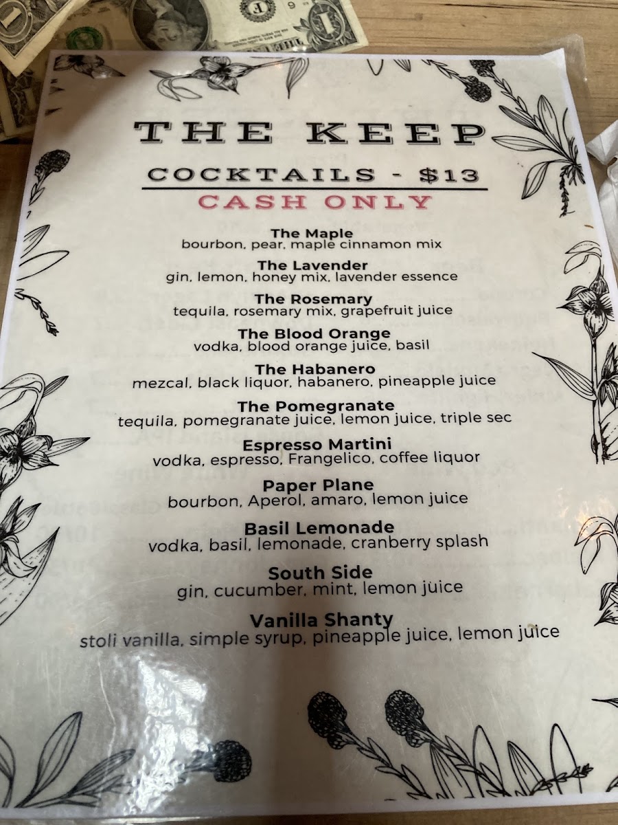 Drinks at The Keep range from well-known beers including Corona to unique cocktails like the spicy Cece, alongside carefully prepared coffee options such as the cortado. These choices fit seamlessly with the bar’s moody, old-world setting, inviting guests to savor something both approachable and distinctive whether they’re settling in for an evening of jazz or a casual night out.